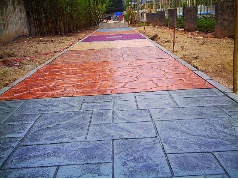 2、圖案設計豐富多彩,顏色鮮麗:彩色壓膜地坪圖案設計豐富多彩,可多方面組合,也可以提供第2種顏色并與基本顏色組合、進而創(chuàng)造出純天然逼真的實際效果。彩色壓模地坪防護膜的噴涂不僅能起到維護混泥土的功能,并且使混泥土的顏色與圖案設計更加鮮艷奪目。