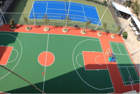 硅PU面層堅韌、密實,不易被鞋底或其它硬物刮花,通過簡易的沖洗即可長期保持球場光潔如新。